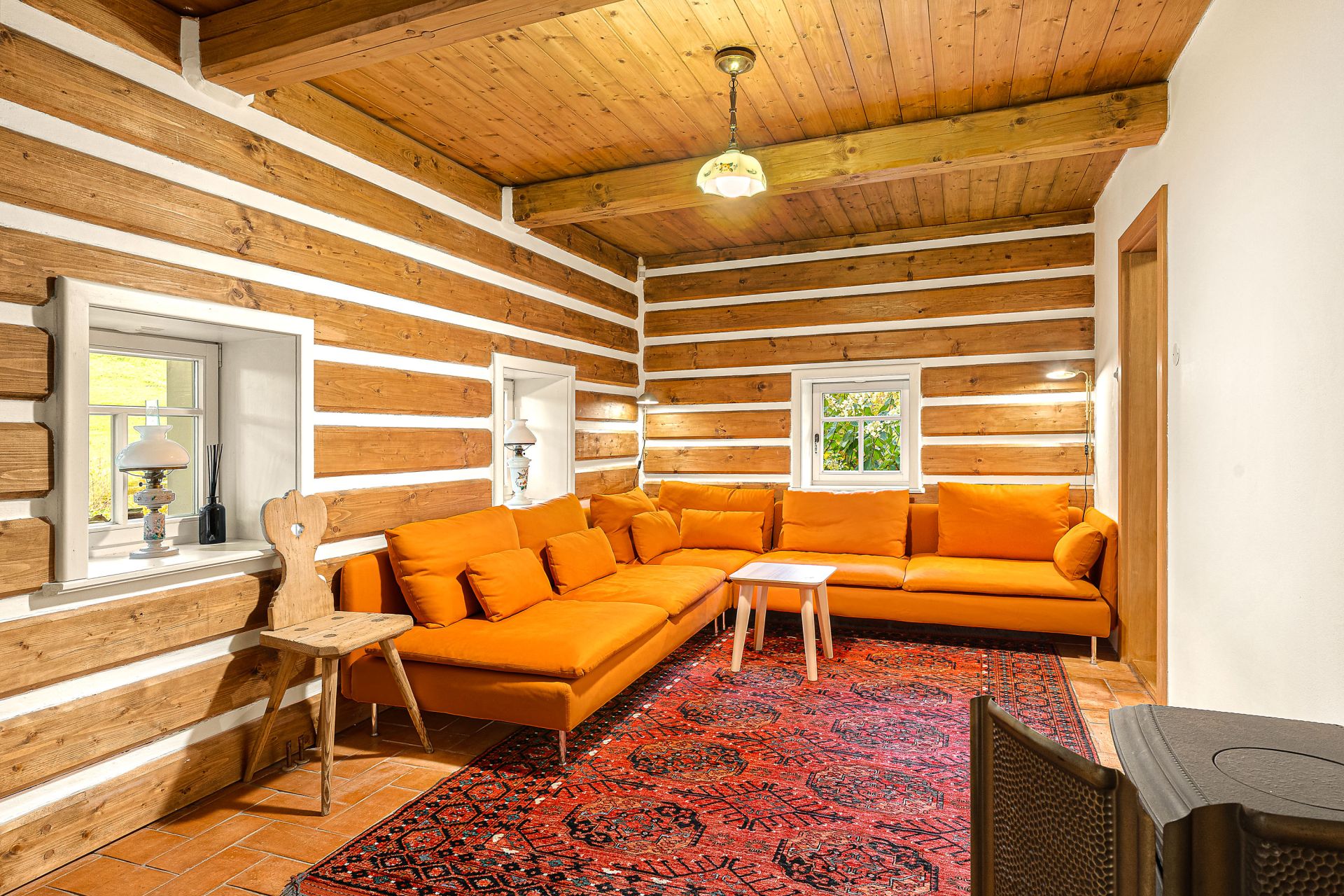 V interiéru naleznete řadu originálních i rekonstruovaných prvků tradičního krkonošského nábytku, které dodávají chalupě jedinečný charakter.