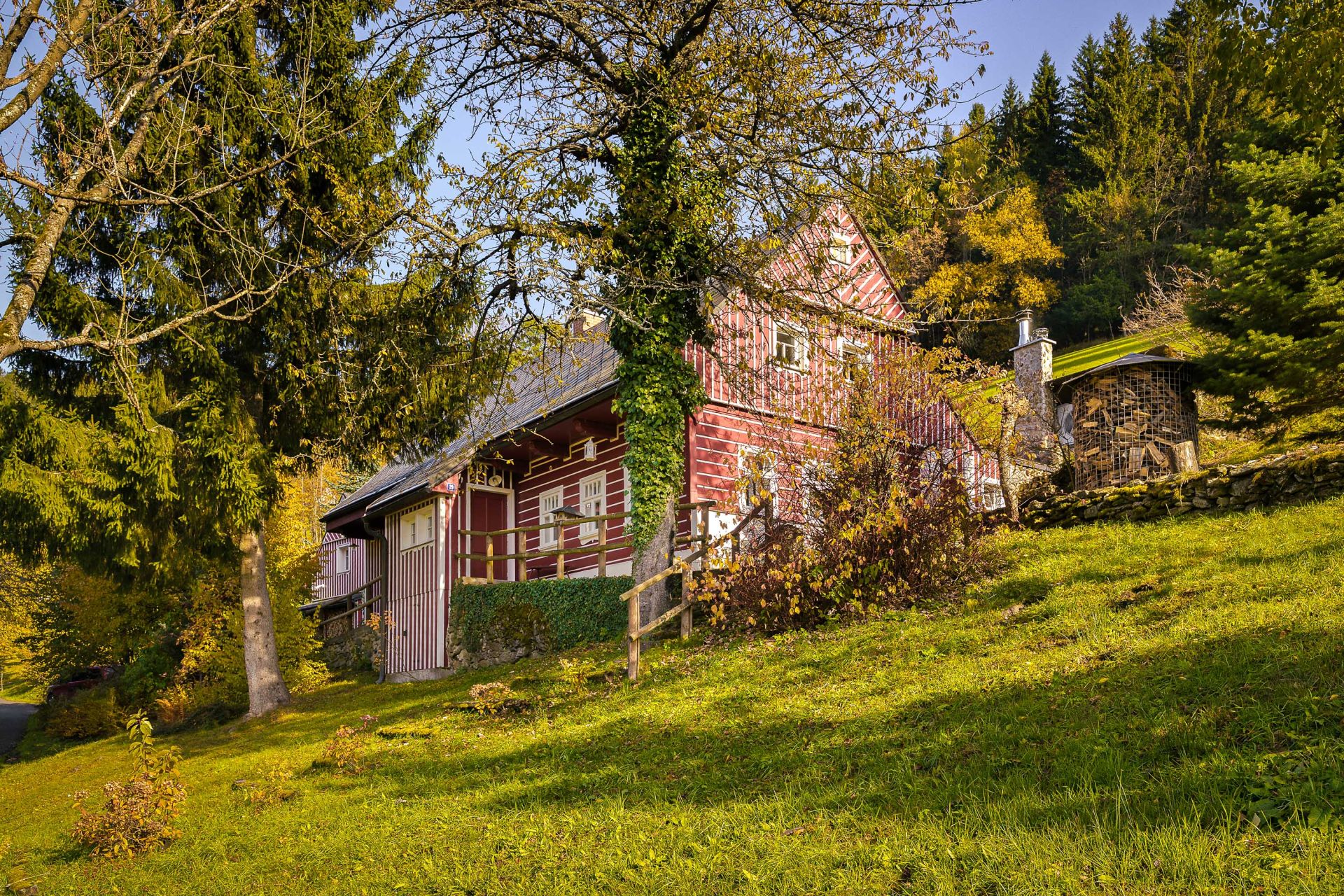 Chalupa byla rekonstruovaná v roce 2006, s důrazem na kvalitu použitých materiálů a dlouhodobou životnost. Měděné rozvody podlahového vytápění Rehau, speciální střešní krytina Capacco, designové vypínače a zásuvky Berker, dveřní kování ruční výroby. O vytápění se starají dvě tepelná čerpadla Stiebel Eltron, nechybí ani kotel na dřevo či možnost využít plyn (2t zásobník propan-butan). V chalupě jsou dvě rekuperace, dvě klimatizace Haier, bezpečností kamerový systém, stabilní a vysokorychlostní DSL internet.