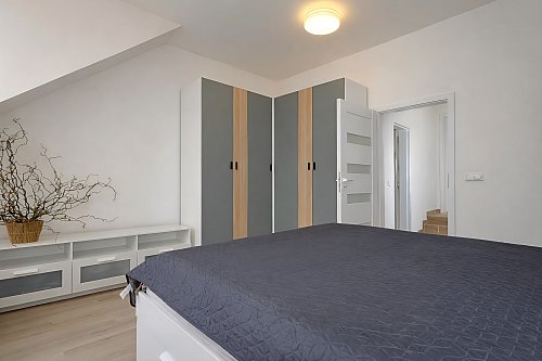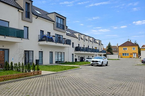 Nabízíme k prodeji řadovou bytovou jednotku o velikosti 101m2 v novostavbě bytového domu (2022) ve Zlončicích. V přízemí se nachází vstupní chodba, technická místnost s toaletou. Obývací pokoj je se vstupem na zahrádku s terasou o velikosti cca 50m2. Kuchyňský kout je vybavený kuchyňskou linkou s vestavěnými spotřebiči. U kuchyně je praktická spíž. před schodištěm se nachází prostor s francouzským oknem, který je možné využít jako slunnou pracovnu. V patře jsou dvě prostorné ložnice a horní koupelna s vanou a toaletou. K bytové jednotce náleží vyhrazené parkovací stání před domem. Prodávající si vyhrazuje právo vybrat kupujícího na základě jím zvolených kritérií.