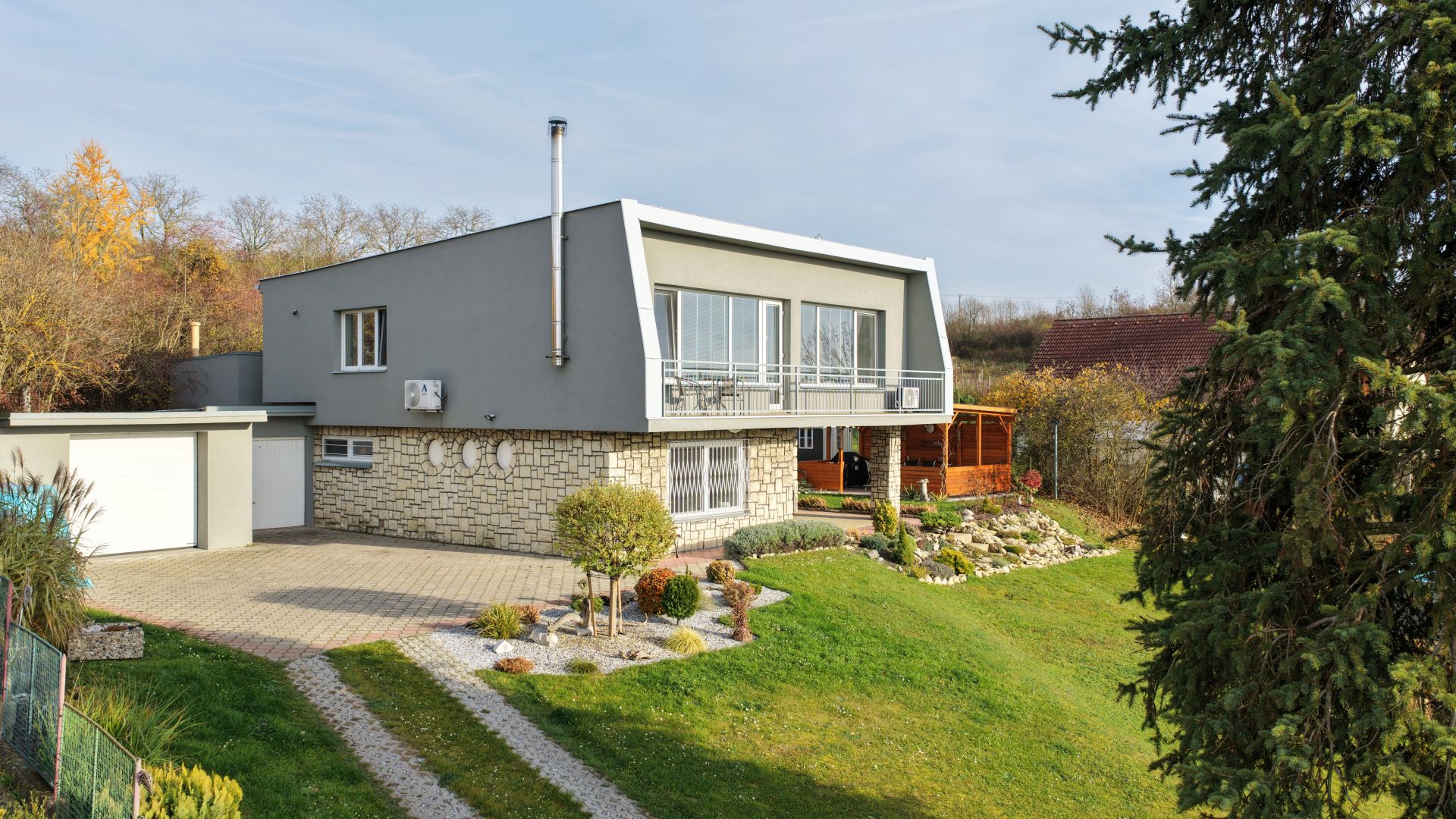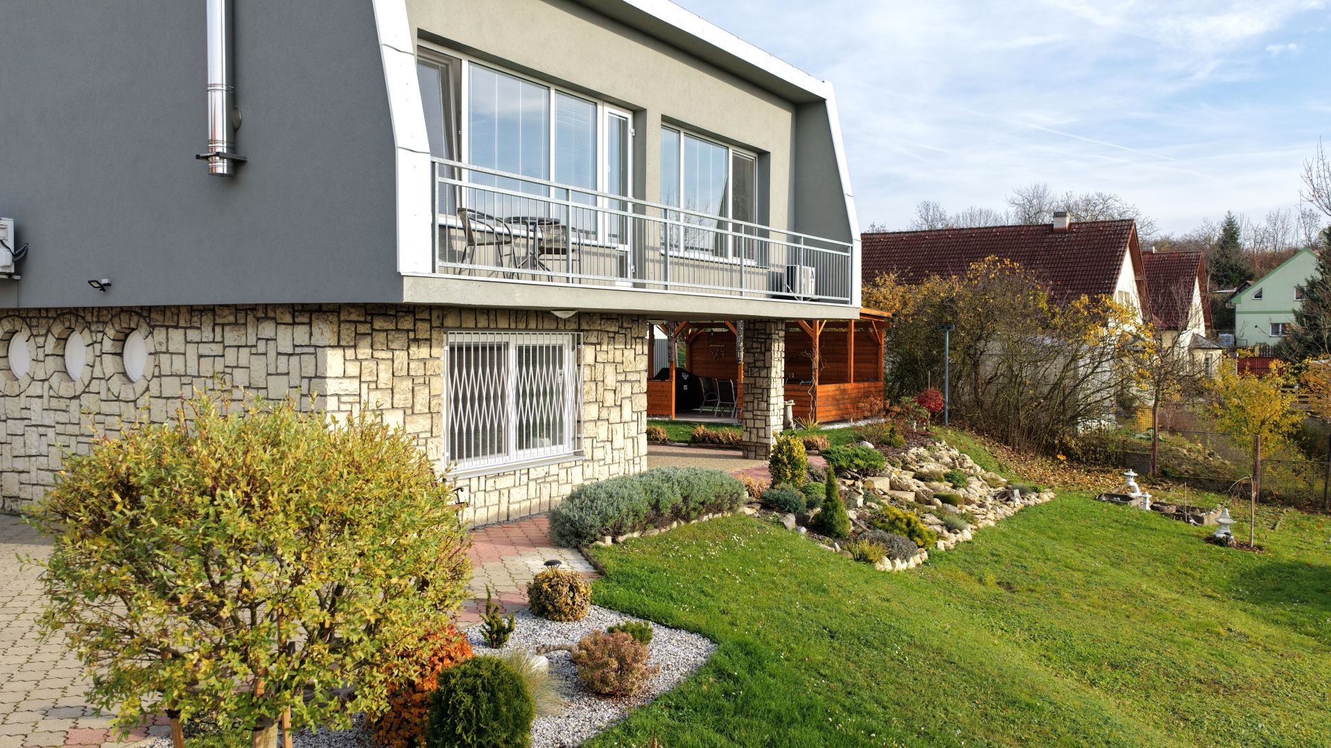 Nabízíme k prodeji samostatné stojící dům - "Šumperák" v okrajové části Mělníka s nádherným výhledem do okolí. Dům prošel v r. 2021 rozsáhlou a velice vkusnou rekonstrukcí. Velkorysá dispozice 5+1 s podlahovou plochou 160m2 nabízí možnost dům využít jako dvougenerační. V přízemí domu se nachází pokoj s kuchyňským koutem, jedna ložnice, která je v současnosti využívaná jako šatna, vstup do sklepa (částečně podsklepeno), technická místnost s elektrokotlem a spodní koupelna s vanou a toaletou. Dominantou celého domu je v patře velkorysý, slunný obývací pokoj se vstupem na terasu a krbovými kachlovými kamny, který je opticky propojený s kuchyní. Ta je vybavená kuchyňskou linkou zhotovenou na zakázku s vestavěnými spotřebiči. Dispozici domu dále tvoří prostorná ložnice a jeden samostatný pokoj. V patře domu se pak nachází horní koupelna s podlahovým vytápěním, která je se sprchovým koutem a samostatná toaleta. Celé horní patro je klimatizované. Atraktivitu domu umocňuje velice vkusné vybavení, které je možné v případě zájmu za odstupné ponechat. Vytápění domu je zajištěné elektrokotlem v kombinaci s krbovými kamny, ohřev vody zajišťuje bojler a odpad je svedený do kanalizace. Na hranici pozemku se nachází plynová přípojka. Na udržované okrasné zahradě o velikosti 1436m2 se nachází vrtaná studna, dvě vzájemně propojené garáže, bazén, pergola pro venkovní grilování, zahradní domek a za domem je vedlejší stavba se skladovacími prostory. Dům je elektronicky zabezpečený a zahrada je pod kamerovým dohledem. Jedná se o jedinečnou nabídku pro zájemce, který ocení kvalitu rekonstrukce a nádherný výhled na zapadající sluníčko.